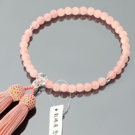 淡いピンク色が綺麗な天然石のローズクォーツを使用した女性用数珠です。