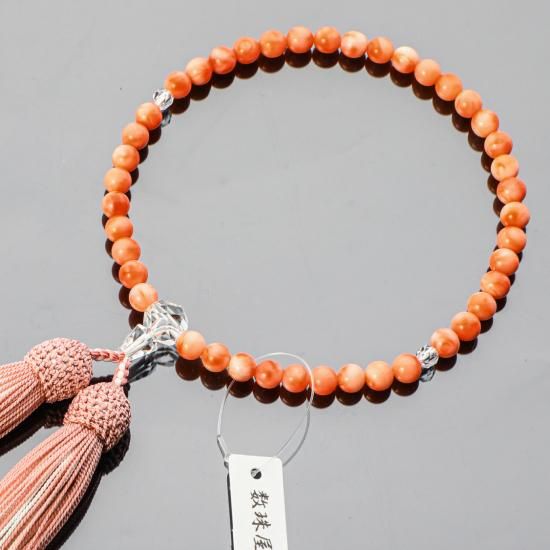 濃いピンク色の濃淡が大変綺麗な深海珊瑚を使用した女性用数珠です。