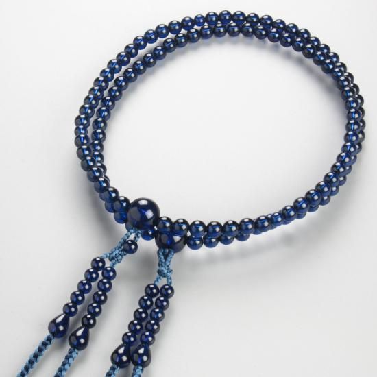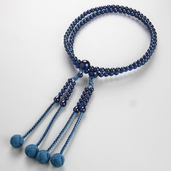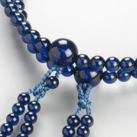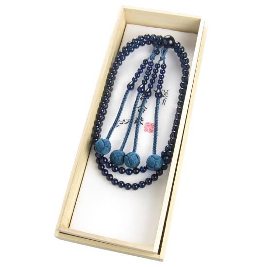深い青が冴えわたるサファイア琥珀(サファイアアンバー)を使用した男性用数珠です。