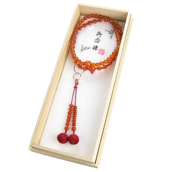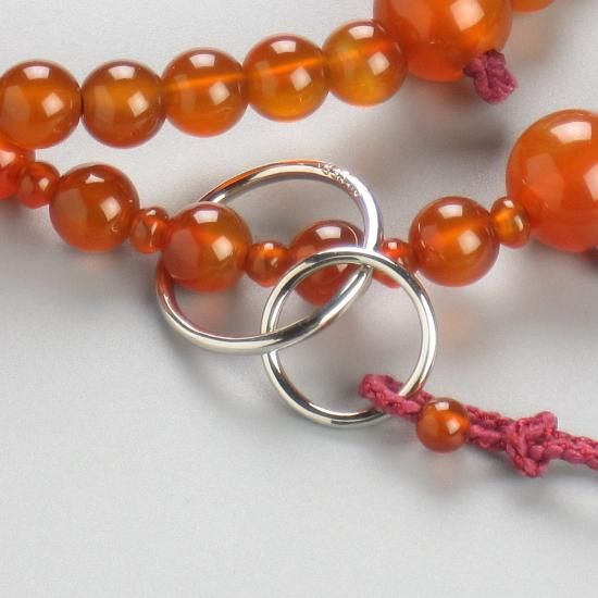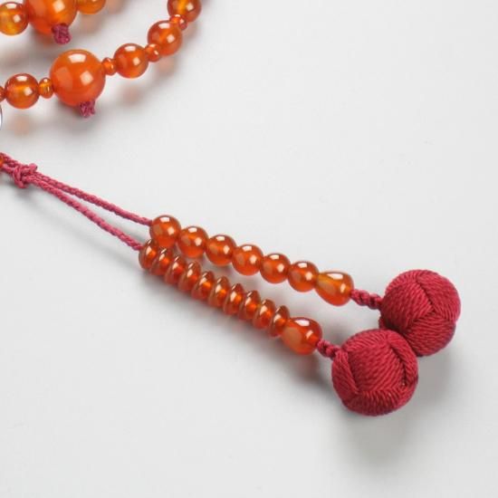 鮮やかな赤橙(あかだいだい)色が目を惹く「カーネリアン」を使用した女性用の本式数珠です。