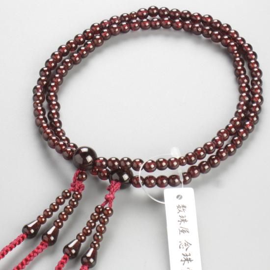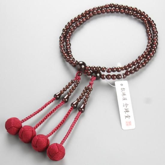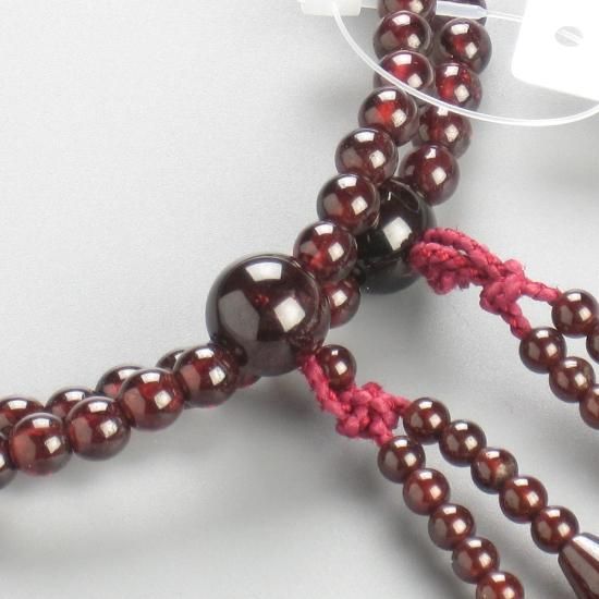 ガーネットは他の天然石に比べ、石の構造上、小さなへこみ等が見られる場合があり、当店の製品基準を満たす高品質な玉の入手が難しく、特に宗派の本式数珠をご用意できるのは稀で、価値ある一連となります。